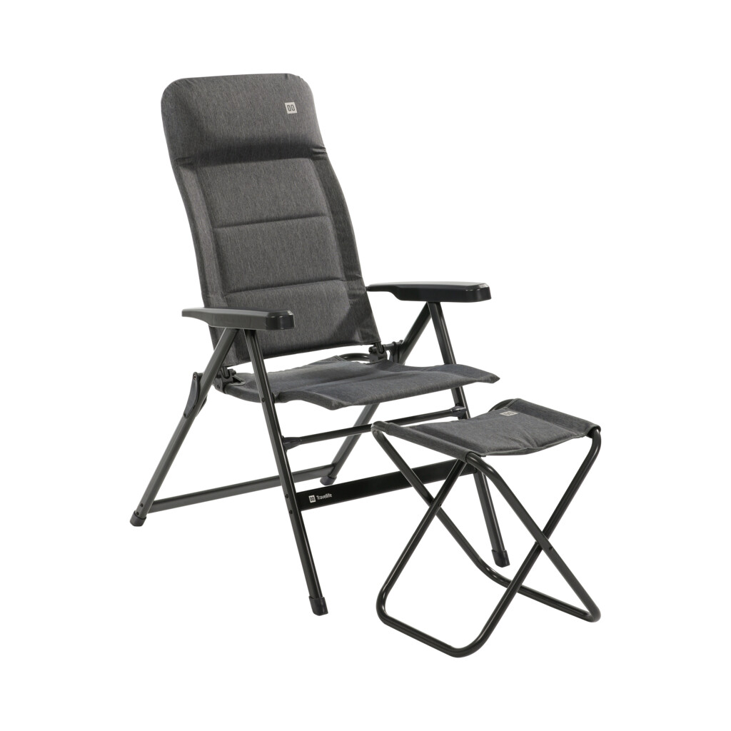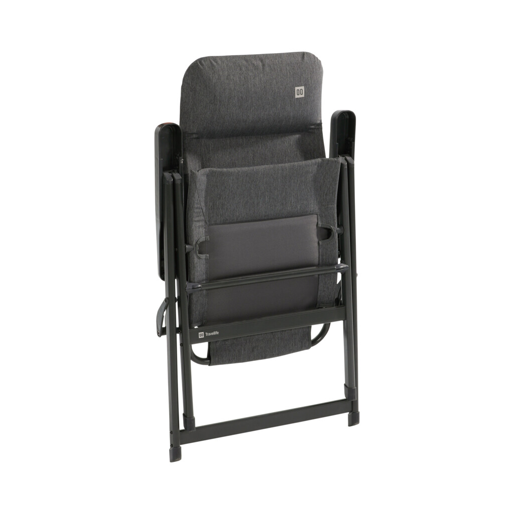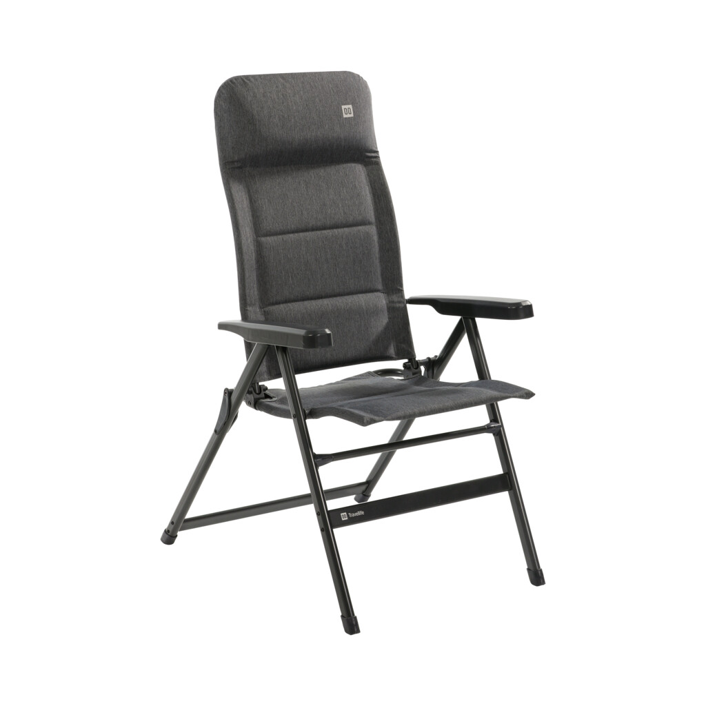 Travellife Lago Comfort är en ställbar campingstol i mörkgrått designad för både avkoppling och måltider vid bordet.