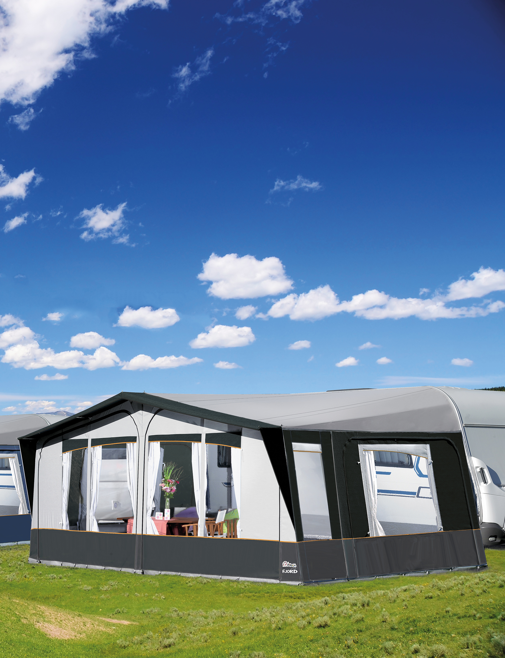 Upplev skillnaden med ett förtält som kombinerar spansk design med robust funktion, anpassat för det skandinaviska klimatet.